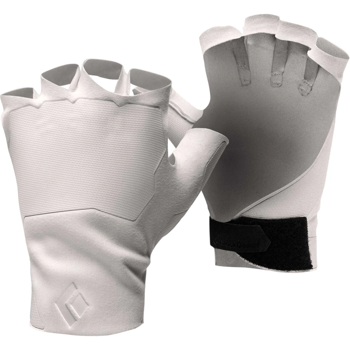 We set out with one goal: to create the best fitting, highest performance crack gloves on the market. And now, weβre proud to introduce our very own Black Diamond Crack Gloves. Utilizing 3D patterning that gives an articulated fit, and featuring a synthetic Suede for maximum abrasion resistance and breathability, the BD Crack Gloves are swanky The 0.6mm rubber adhesive film is set into a molded depression making a seamless surface transition from suede to rubber β resulting in the overall glove thickness of less than 1mm and which provides the perfect balance of protection, dexterity, and grip. The Hypalon strap provides a thin, lowprofile losure thatβs strong and secure for jamming, and the flat-stitched patterning reduces bulk and increases comfort. The BD Crack Glovesβ white color reduces heat uptake during mega pitches in the desert sun, and also mimic the classic tape glove construction for superior fit. Model: BD8018691006.