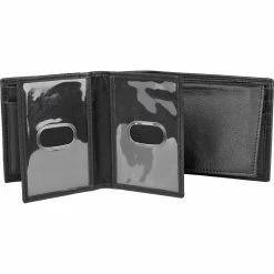 The butter soft leather Emblem Double I.D. Billfold from Buxton features a lined currency section with divider, removable 2 sided card case with I.D. window, 9 credit card slots and 2 utility pockets. This wallet is perfectly designed to hold all of your essentials. It’s easy to care for and perfectly sized for sliding into your pocket. Style: 28826.BK.