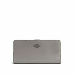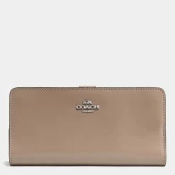 Crafted in smooth and refined calf leather, the Skinny Wallet from COACH conceals a well-organized interior complete with 15 card slots, three full-length bill compartments, an ID window and a zippered coin pocket in a slender silhouette. The snap closure helps provide security. It fits all phone sizes up to an iPhone 7 Plus and Samsung S7 Edge. Style: 58586.