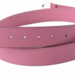 This Gucci belt is crafted of sleek glossy pink calfskin leather with an interlocking GG light fine gold-toned buckle. This classic Gucci belt is a true staple piece for your wardrobe.