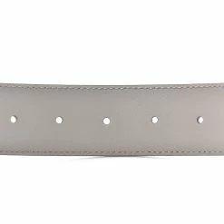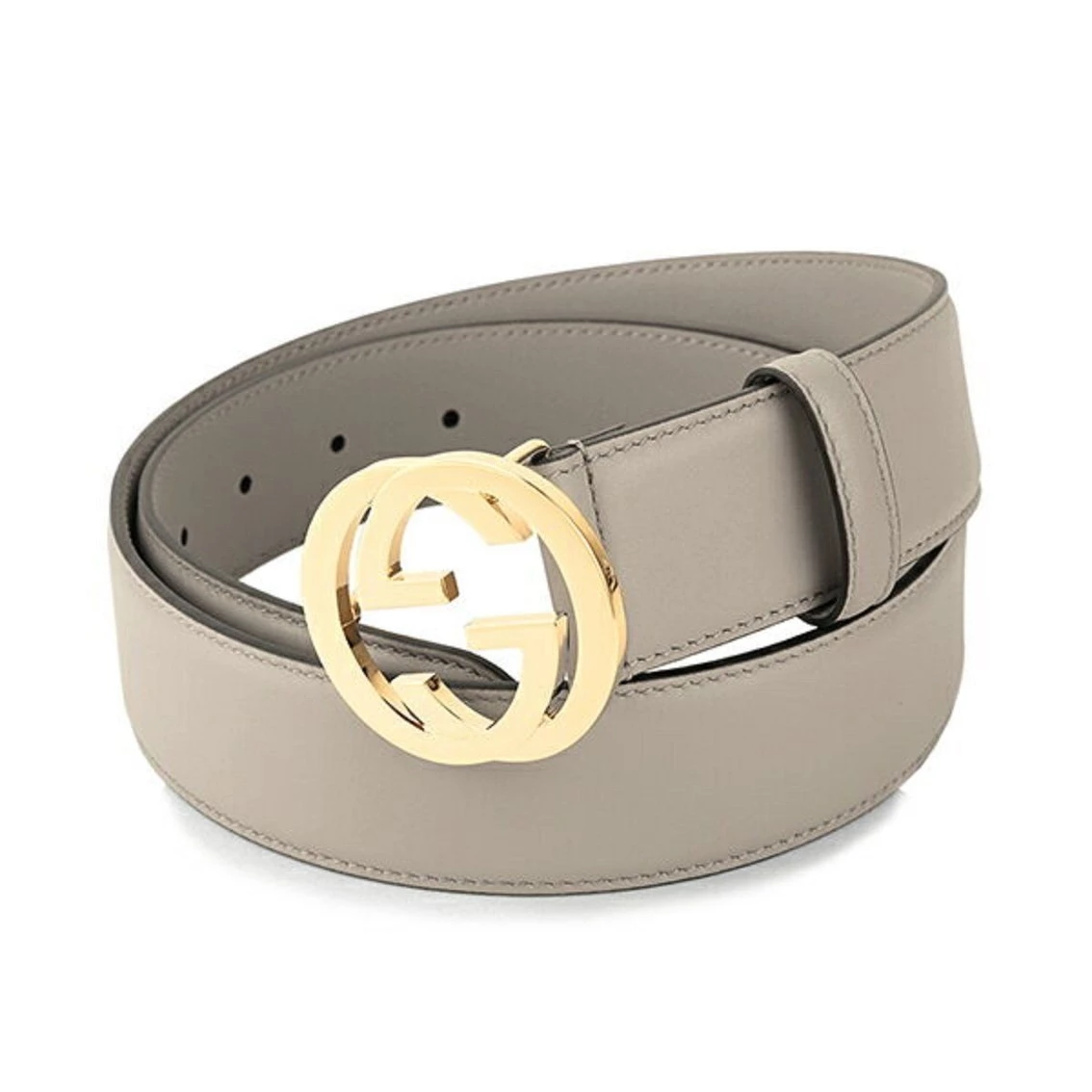 This Gucci belt is crafted of sleek Storm grey calfskin leather with an interlocking GG light fine gold-toned buckle. This classic Gucci belt is a true staple piece for your wardrobe.