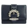 This stunningΒ Jimmy Choo Cheri Tri-Fold WalletΒ is crafted from Parrot Blue calfskin leather and features a decorative crystal buckle. The single-snap flap opens to an interior which includes 6 card slots, one bill slot, two slot pockets, and a zipper pocket! Look effortlessly polished with this elegant piece from Jimmy Choo.