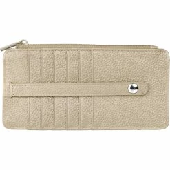 This thin card holder from Julia Buxton is made of naturally milled butter soft leather. It features a snap strip that secures six credit card slots, a large outside slip pocket, an I.D. window and full top-zip for additional security. The snap closure helps keep your items secure. Style: 235R64.