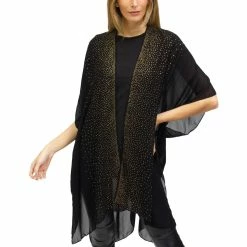 The Just Jamie Solid Kimono with Galaxy Stone Border is a fun seasonless solid kimono with embellished stones. This topper features a stylish embellished pattern and easy-to-wear lightweight material. It’s a perfect layering piece to dress up your outfit with ease. Beach wear, work wear, evening wear. Style: KO18554JMS-IVBK.