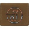 Carry your essentials in cool, Western-inspired style with the Justin Genuine Leather Bifold Slim Wallet. It’s two tone brown with a laser cut circle J logo and serape inlay. This bifold wallet comes with 4 credit card slots. Style: 22054842W11.