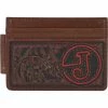 Justin Genuine Leather Trifold Wallet, two tone chestnut with embossed Justin logo, 4 open slot pockets, 9 credit card slots, 1 license holder. Style: 22054765W3.