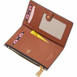 Kate Spade New York’s Spade Flower Monogram Coated Canvas Small Slim Bifold Wallet features 8 CC slips, 2 slip pockets and 1 zipper pocket for convenient storage of all your essentials. It also has a metal pinmount logo. Style: K8939001.