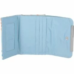 The Mundi Anna Small Indexer features a front flap with a mini bar at the bottom center and the back has a top entry zipper pocket. Inside, the side bill pocket runs the entire length of the wallet, the middle wall has 4 credit card slots and the right wall has 1 ID window with a thumb hole ejector. Model: LH631450.