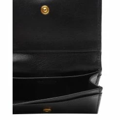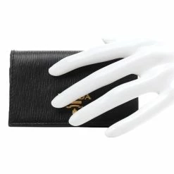 This Pradaย vitello blackย card holder is absolutely adorable and is the perfect size for travel. The front flap is decorated with a gold Prada Paris logo, and opens to a main interior compartment with three card slots. Stay organized and in style with this polished card holder.
