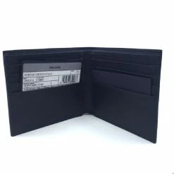 This black Prada wallet is a great addition for any man’s wardrobe. It is a universal wallet so it is great for any purse or back pocket that features an embossed Prada logo on the front. Theย saffiano cuir leather adds great texture and visual appeal. The design is stylish and classic which makes it perfect for any outing.