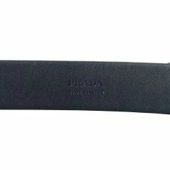 This classic Prada belt features a matte silver oval buckle with Prada Milano logo engraved. Constructed with saffiano cross-grain leather, this belt is practical for everyday wear.Β