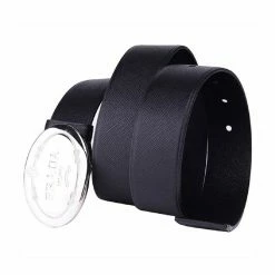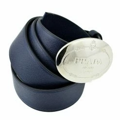 - Prada Navy Blue Saffiano Leather Belt with Silver Prada Belt Buckle 2CM046