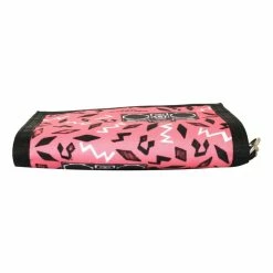 This Saint Laurent trifold chain wallet inΒ pink nylon features an illustrative radio print along with silver-tone hardware. The Velcro closure flap opens a black nylon interior with five card slots, one zippered coin pocket, and one long bill slot. This slim and sleek trifold is perfect for everyday use, and will hold all of your daily essentials.