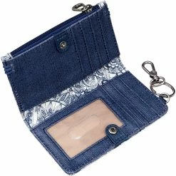 Keep track of your essential belongings with many interior card slots, bill slots, an ID window and even a keyring on the Sakroots Encino Slim Wallet. This chic wallet is perfect for everyday use. Style: 109028NVYSD.
