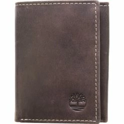 This genuine leather trifold wallet from Timberland includes a double billfold, ID window and card slots. Stitch detailing adds to the style. Style: D01388.