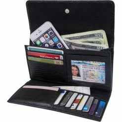 This Timberland RFID wallet for women is made from 100% genuine leather and stops theft and electronic pick pocketing to protect your credit cards, debit cards, drivers license, bank cards or any other RFID-enabled cards. The quality and craftsmanship makes this wallet clutch is the ideal wallet to keep you organized and looking stylish. This compact leather wallet’s interior features an envelope system design and has plenty of storage to carry all your essentials. It is the best women’s leather clutch you can buy. Style: DW030308.